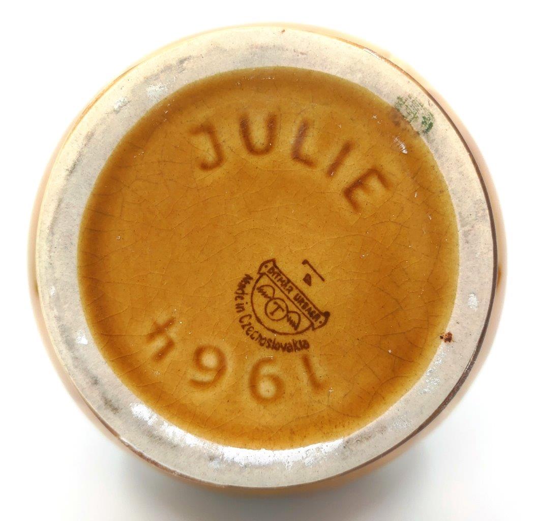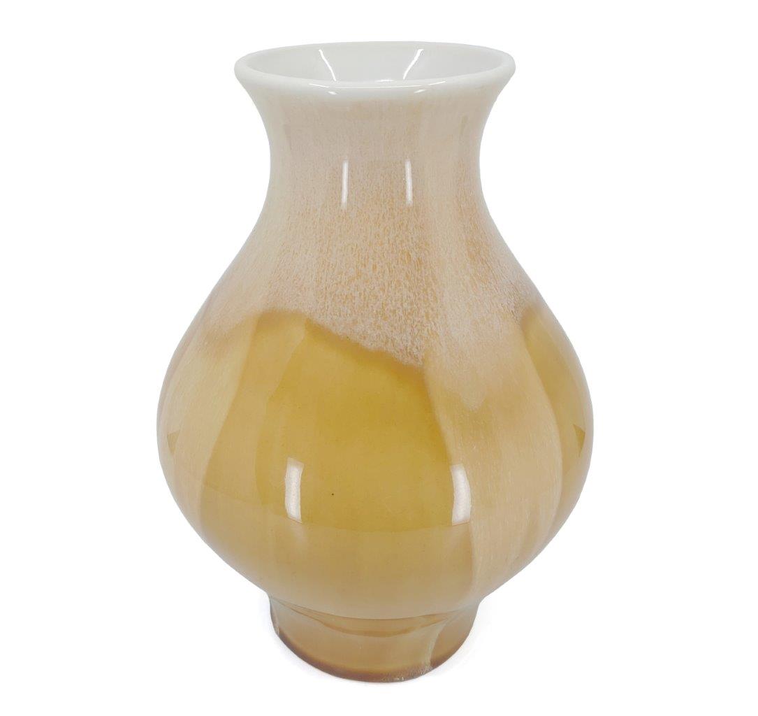 Popis: Váza plnějšího tvarů, keramika s smetanově karamelovou glazurou s jemnou krakeláží, model Julie 1964