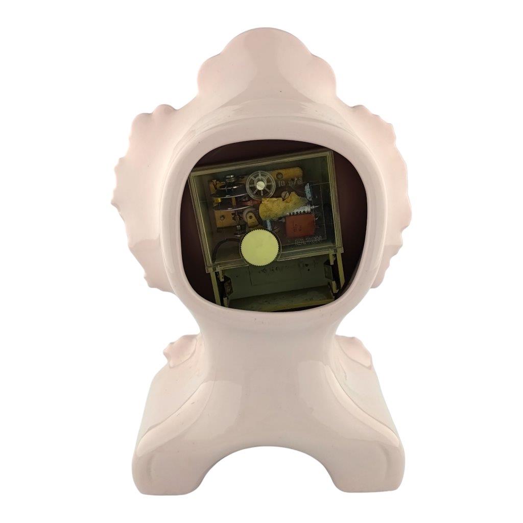 Popis: Hodiny krbové s květinovým motivem a zlacením, růžový porcelán