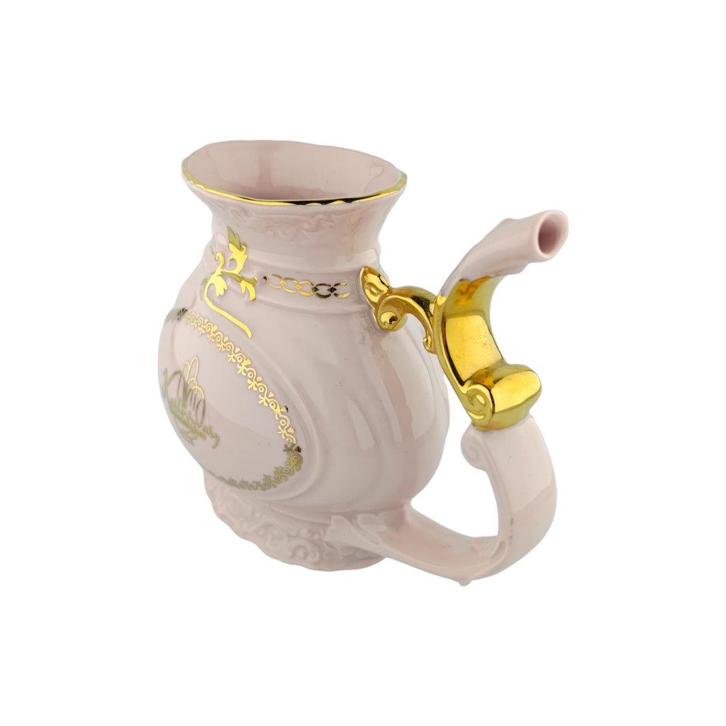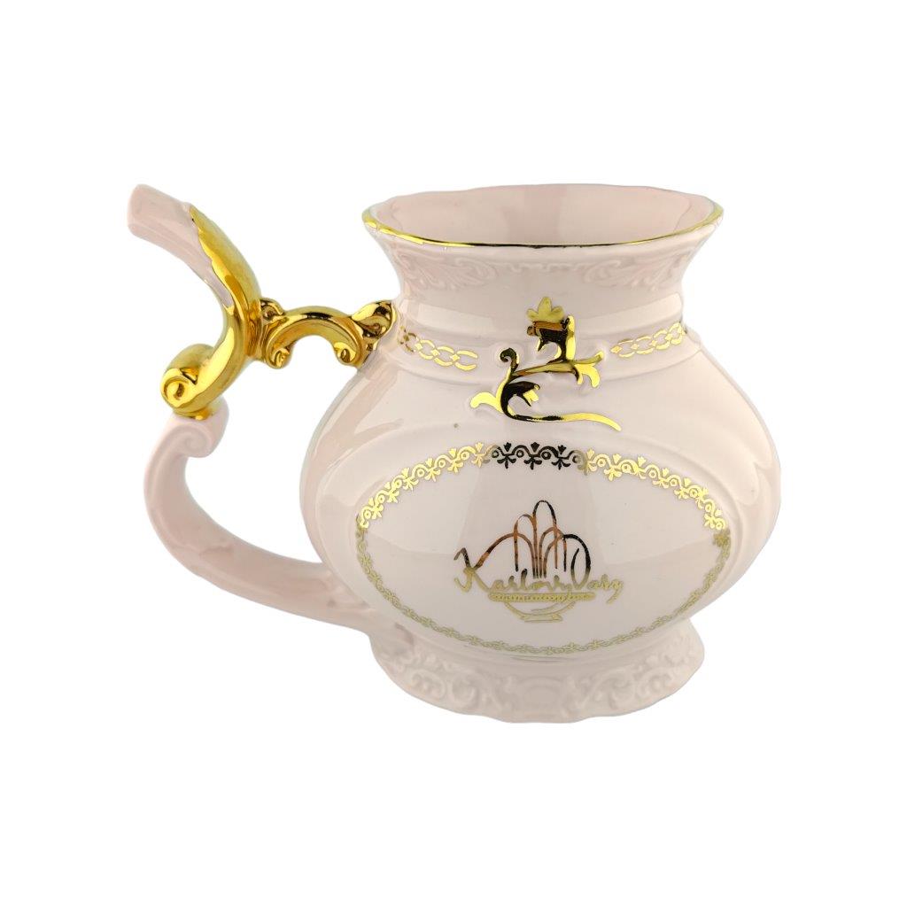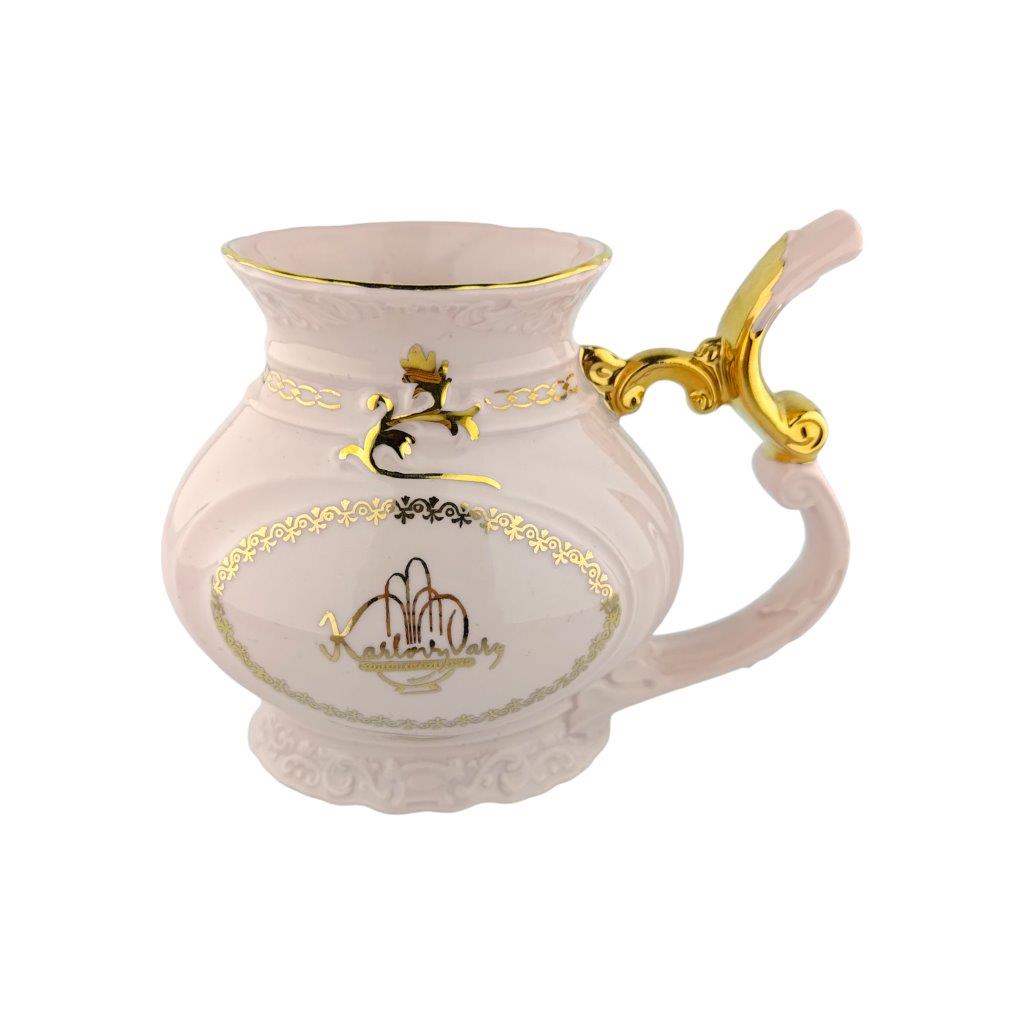 Popis: Lázeňský pohárek, růžový porcelán se zlacením