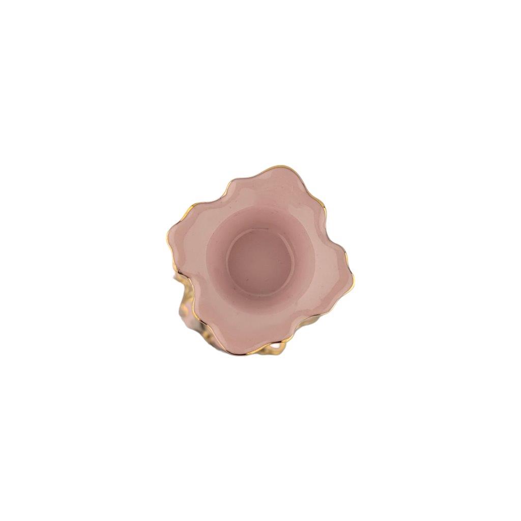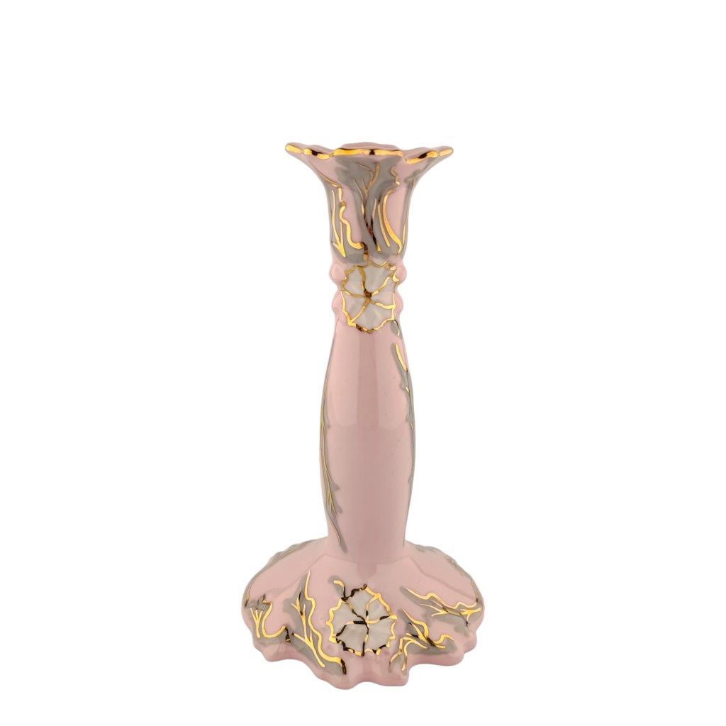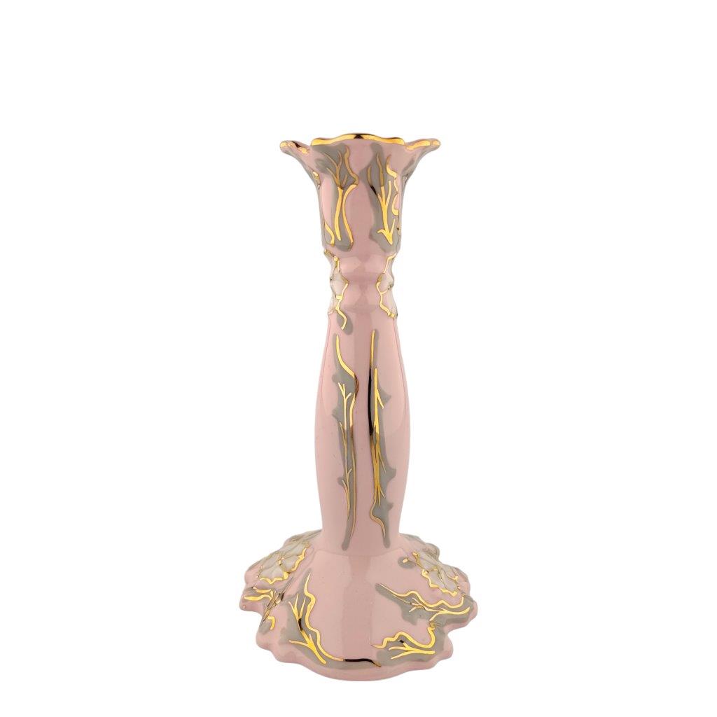 Popis: Svícen jednoramenný s květinovým motivem a zlacením, růžový porcelán, model Renata