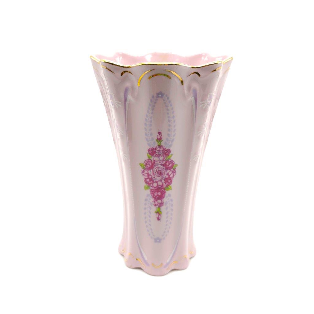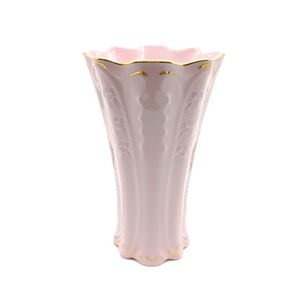 Popis: Váza s květinovým motivem a zlacením na okraji, růžový porcelán, model Olga