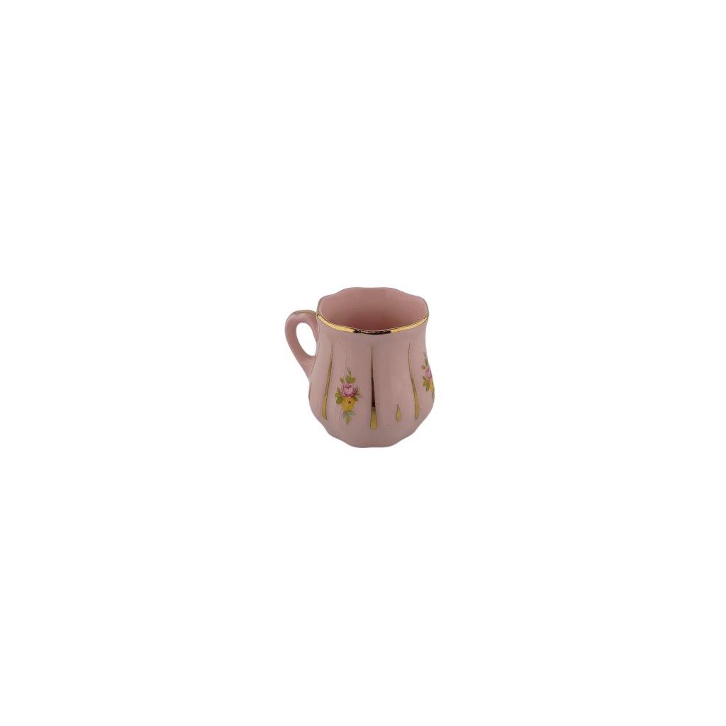 Popis: Hrnek miniatura, růžový porcelán s květinovým dekorem a zlacením