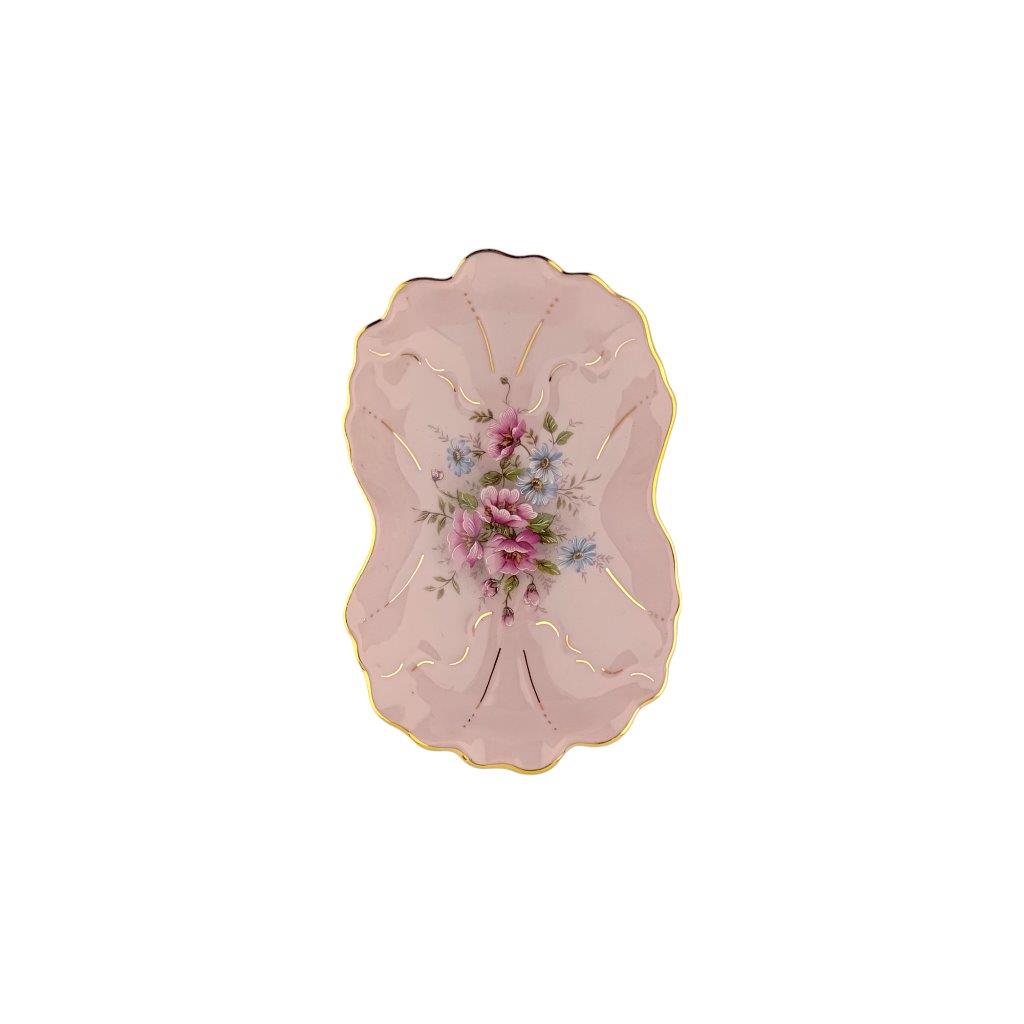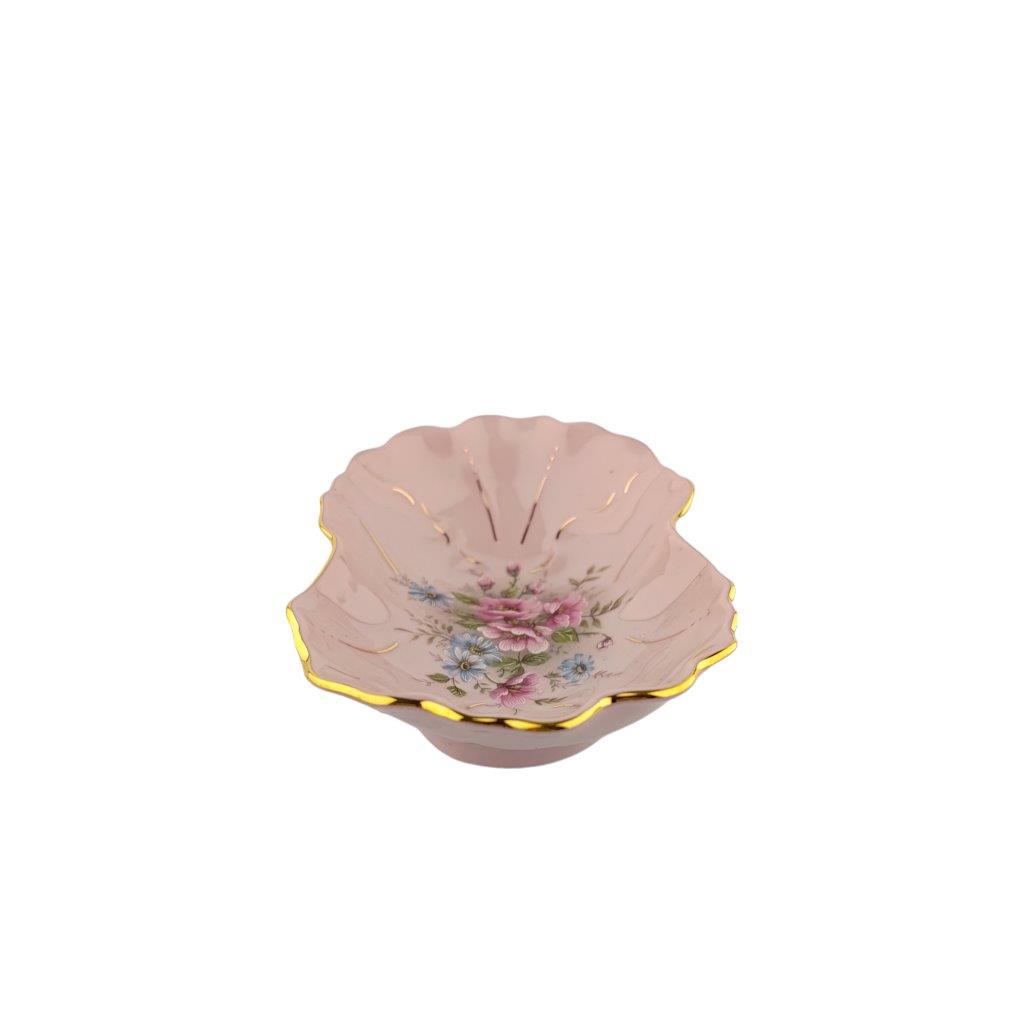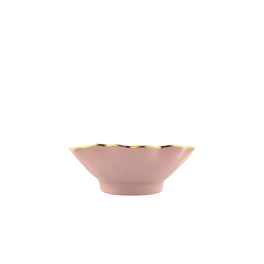 Popis: Miska malá z růžového porcelánu a zlacením