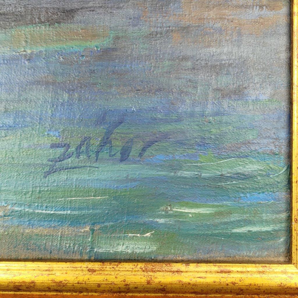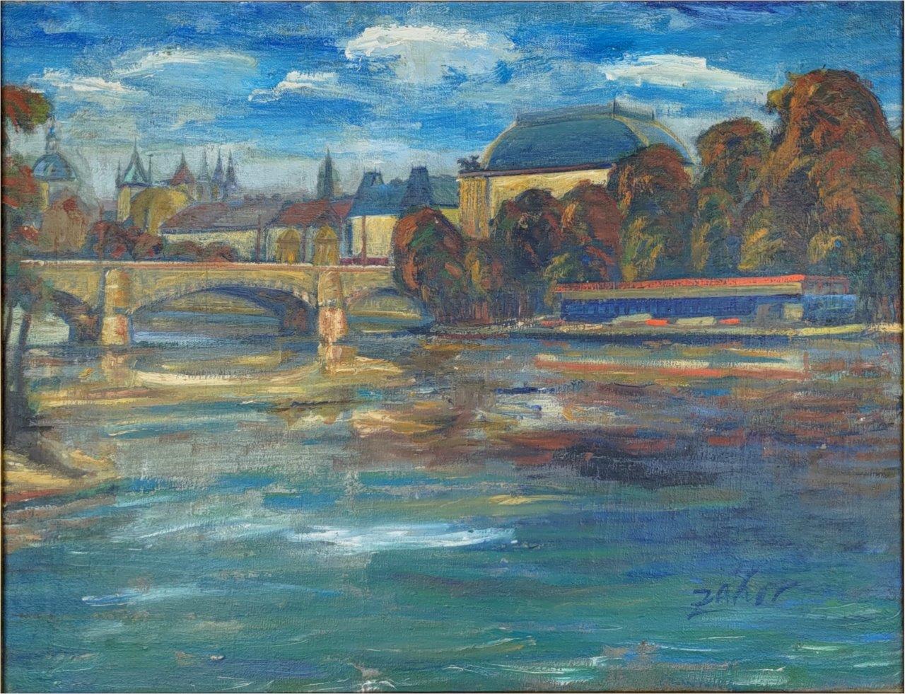 Vltava u Národního divadla od malíře Jaroslava Záhoře. Malba bez poškození, nový rám