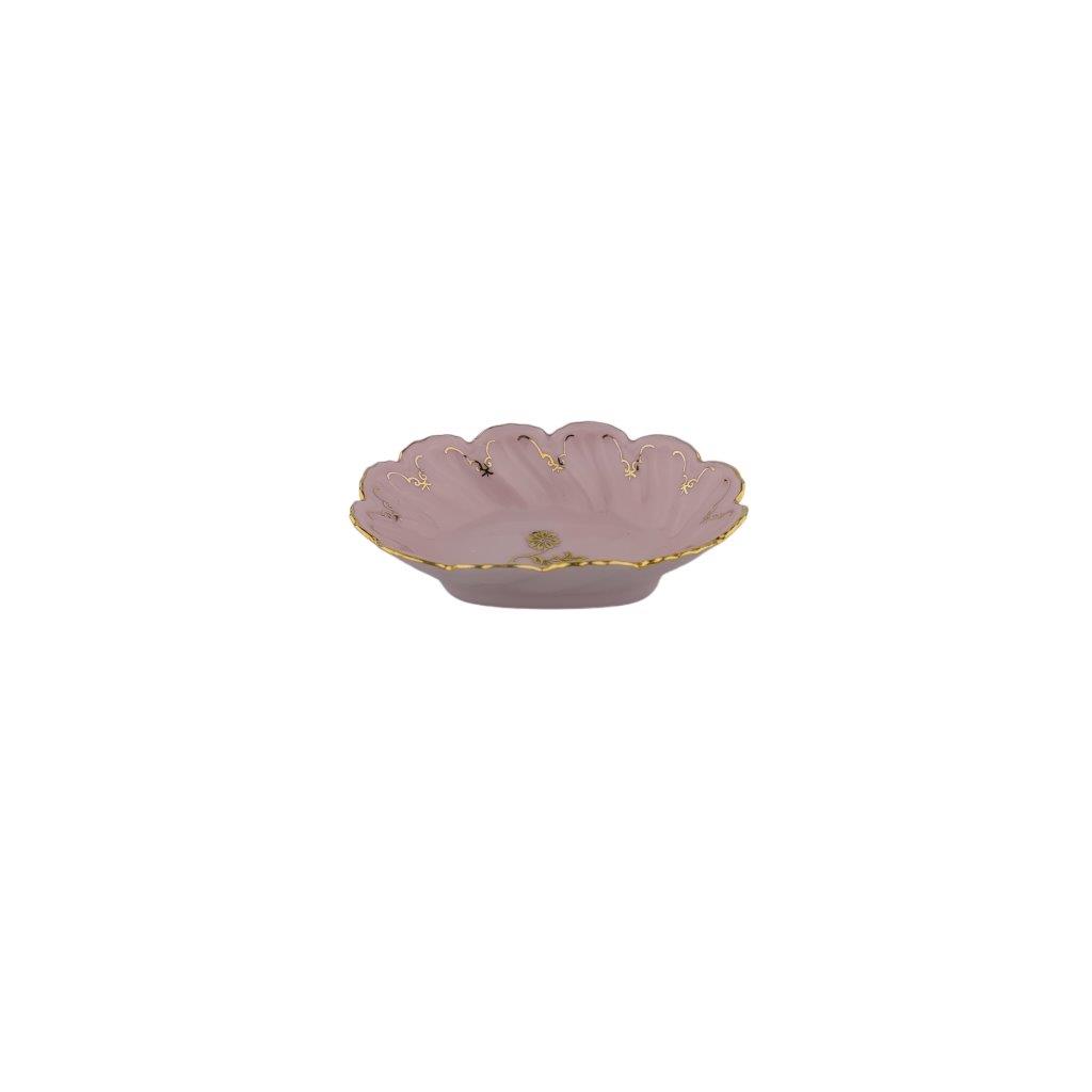 Popis: Miska miniatura, růžový porcelán se zlatým dekorem