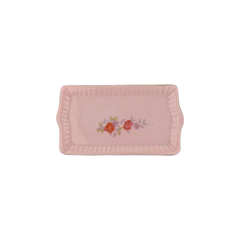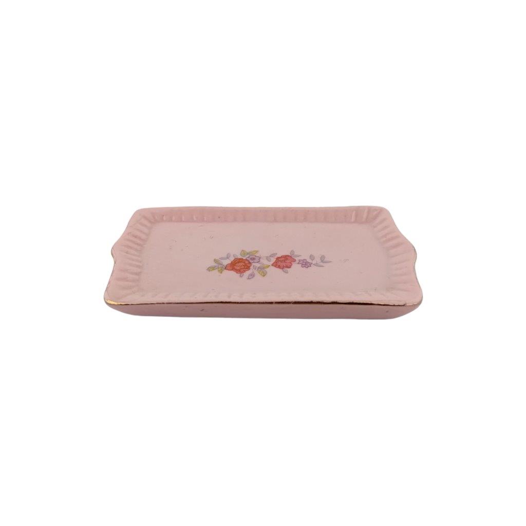 Popis: Podnos mini z růžového porcelánu a zlacením