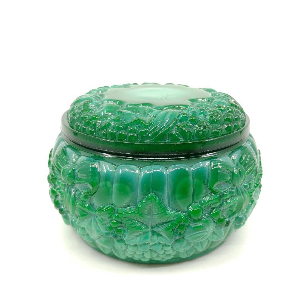 Dóza z malachitového skla, Curt Schlevogt, bez poškození