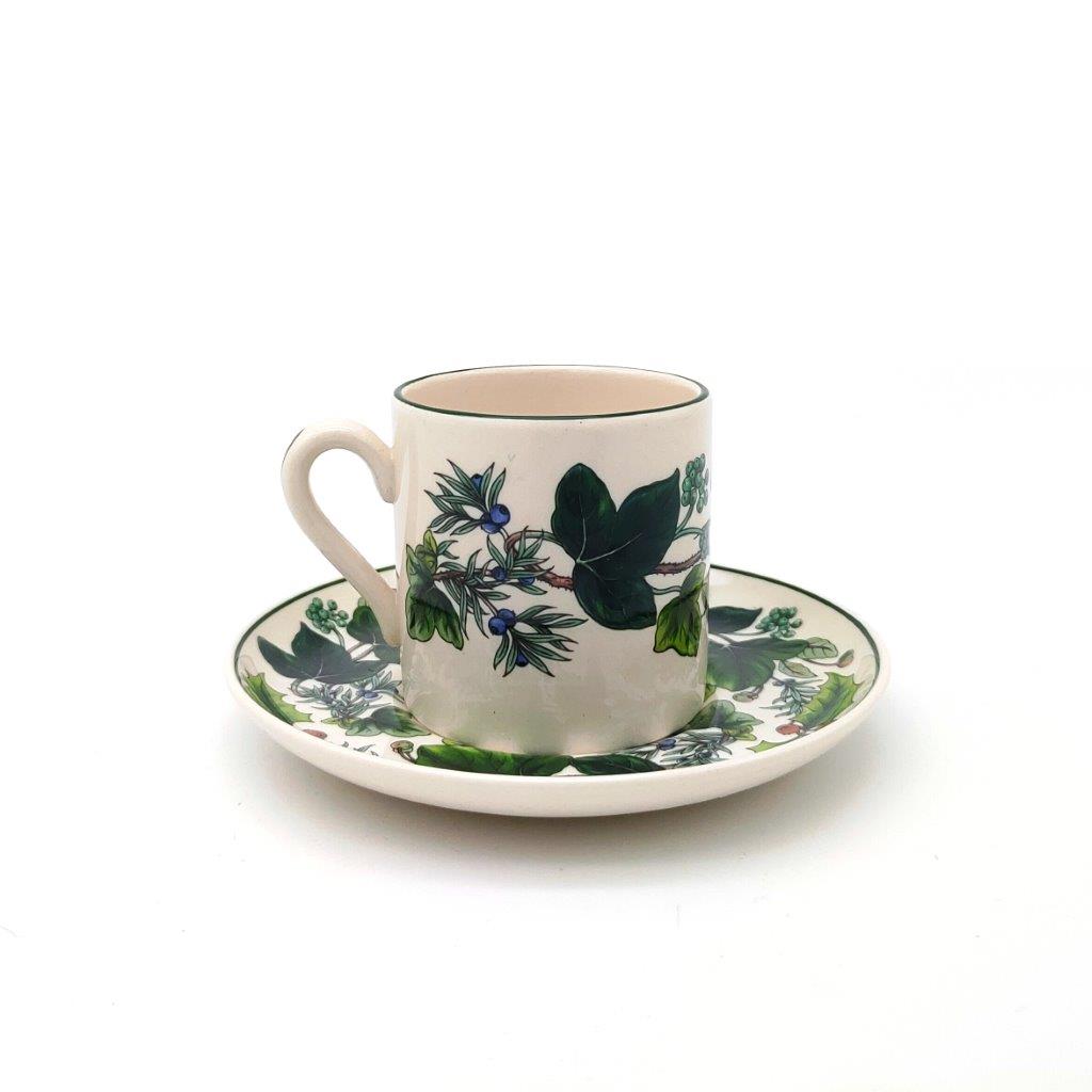 Popis: Malý hrnek na kávu s podšálkem a dekorem Green Garland